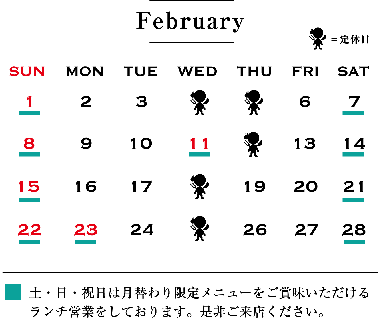 2月の休業日のご案内