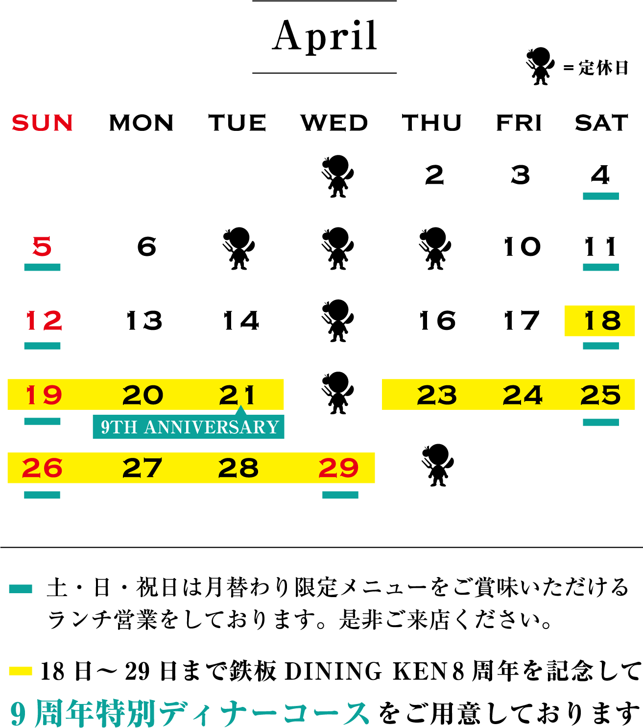 4月の休業日のご案内